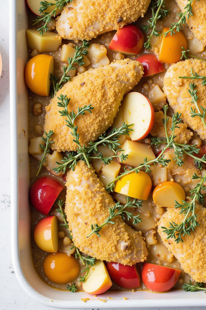 What sets this chicken casserole apart is its use of classic fall ingredients—think sweet potatoes, apples, and earthy herbs—all baked together in a creamy, bubbly dish. The flavors meld beautifully, and the tender chicken soaks up all the goodness from the vegetables and aromatic spices. As an added bonus, this recipe’s “one-pan” format makes prep, cleanup, and serving a breeze—ideal for busy autumn evenings or easy entertaining.