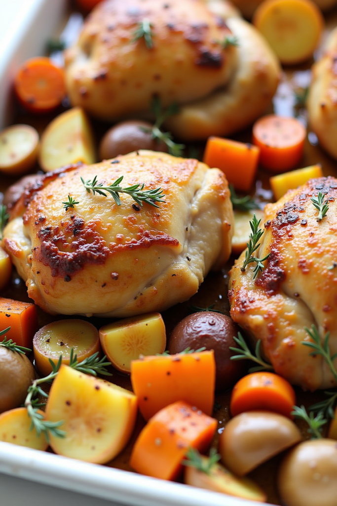 For maximum flavor, coat chicken and veggies thoroughly in olive oil and a medley of fall-inspired spices like rosemary, thyme, and smoked paprika. Cut vegetables uniformly to ensure even cooking. Toss in sliced apples during the last 10 minutes of roasting for a sweet and tangy twist that complements the savory chicken.