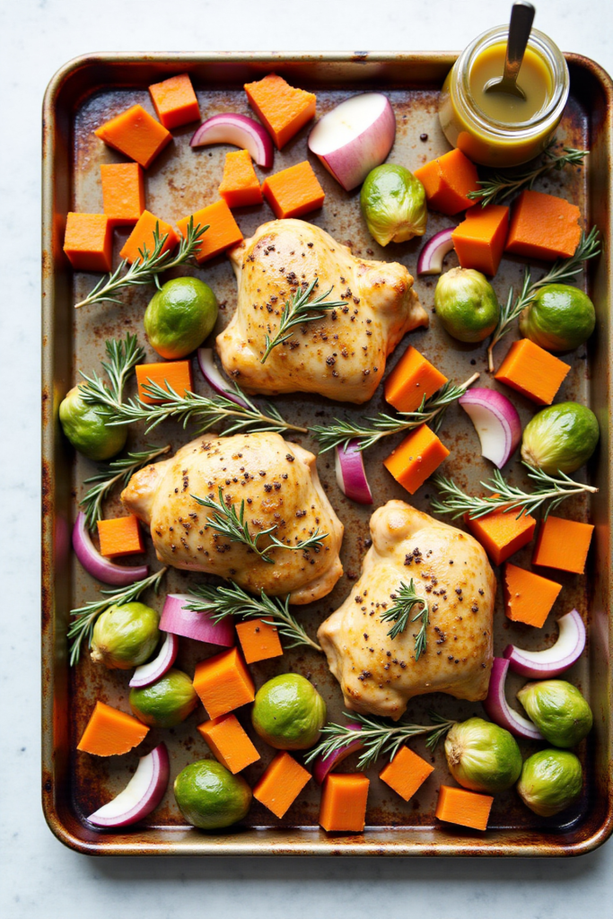 Start by evenly distributing bite-sized pieces of chicken and vegetables on a baking sheet. Drizzle with olive oil and season generously with fragrant herbs and spices. Pop everything into the oven and let the magic happen—a hands-off dinner that fills your kitchen with savory autumn aromas.