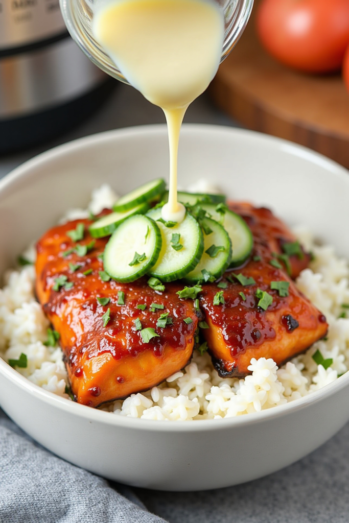 Start by making your base: fluffy steamed rice is the traditional choice, but you can also use quinoa or cauliflower rice for a lighter bowl. Top with the freshly glazed salmon, then add an array of crisp vegetables, such as sliced cucumbers, shredded carrots, and creamy avocado. A sprinkle of toasted sesame seeds or a handful of chopped scallions ties it all together, adding texture and freshness.