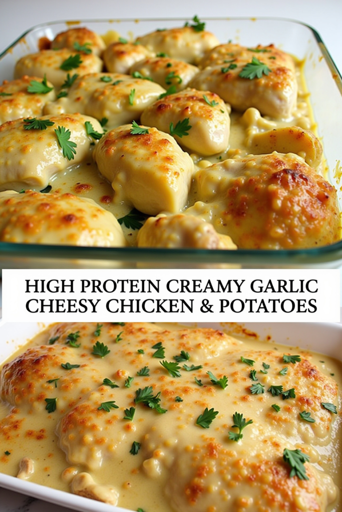 Protein-Packed Comfort: Creamy Garlic Cheesy Chicken & Potatoes Delight