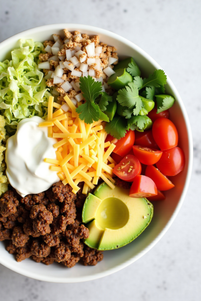 This Protein Packed Low Carb Burrito Bowl delivers all the zesty, satisfying flavors of your favorite Tex-Mex dish—without the carbs or guilt. Brimming with lean protein, fresh vegetables, and a tangy, homemade dressing, this recipe is designed for anyone seeking a nourishing, energizing meal prep option. Quick to assemble and endlessly customizable, it makes healthy eating as delicious as it is convenient.