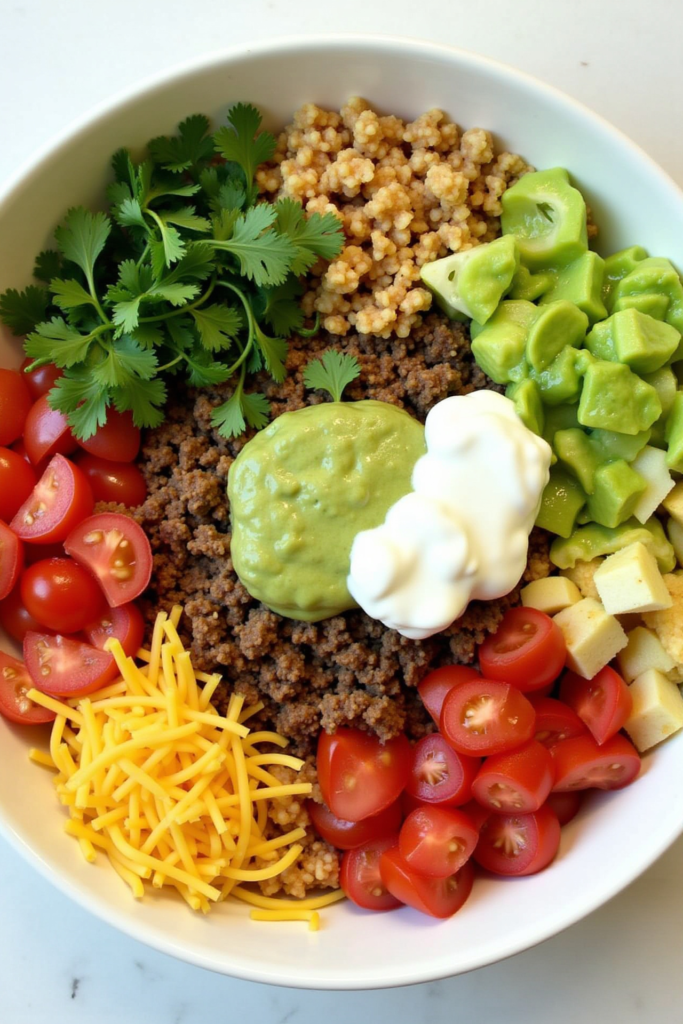 Choose between chicken breast, lean ground beef, or turkey for the protein. Sauté it with Tex-Mex spices like cumin, paprika, garlic powder, and chili powder until perfectly browned and juicy. This protein base delivers the bold, zesty flavor foundation of your burrito bowl while keeping things lean and wholesome. For a plant-based variation, try tofu or tempeh seasoned the same way.