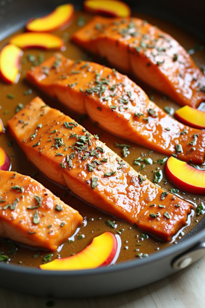 This dish’s irresistible glaze is the secret to its popularity: roasting fresh peaches amplifies their natural sweetness, while a touch of tangy citrus and gentle spices infuse the salmon with layers of vibrant flavor. The glaze caramelizes as it bakes, locking in moisture and adding a glistening finish. The result? A healthy, restaurant-quality meal that’s easy enough for any home cook to add to their weekly repertoire.