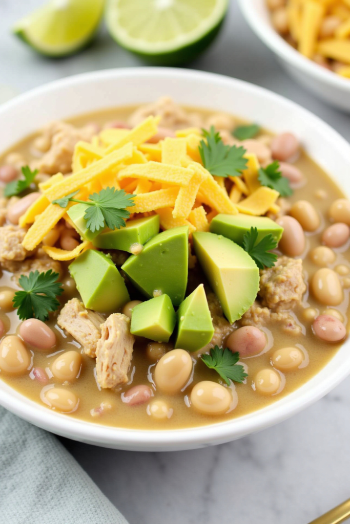 White Chicken Chili stands out for its creamy texture, subtle heat, and tangy flavor profile thanks to sour cream and lime juice. Unlike traditional red chili, it feels lighter but remains just as satisfying—making it a hit with a variety of palates. This recipe allows for quick assembly, packs well for leftovers, and is endlessly customizable with your favorite toppings like avocado, cilantro, cheese, and tortilla strips.